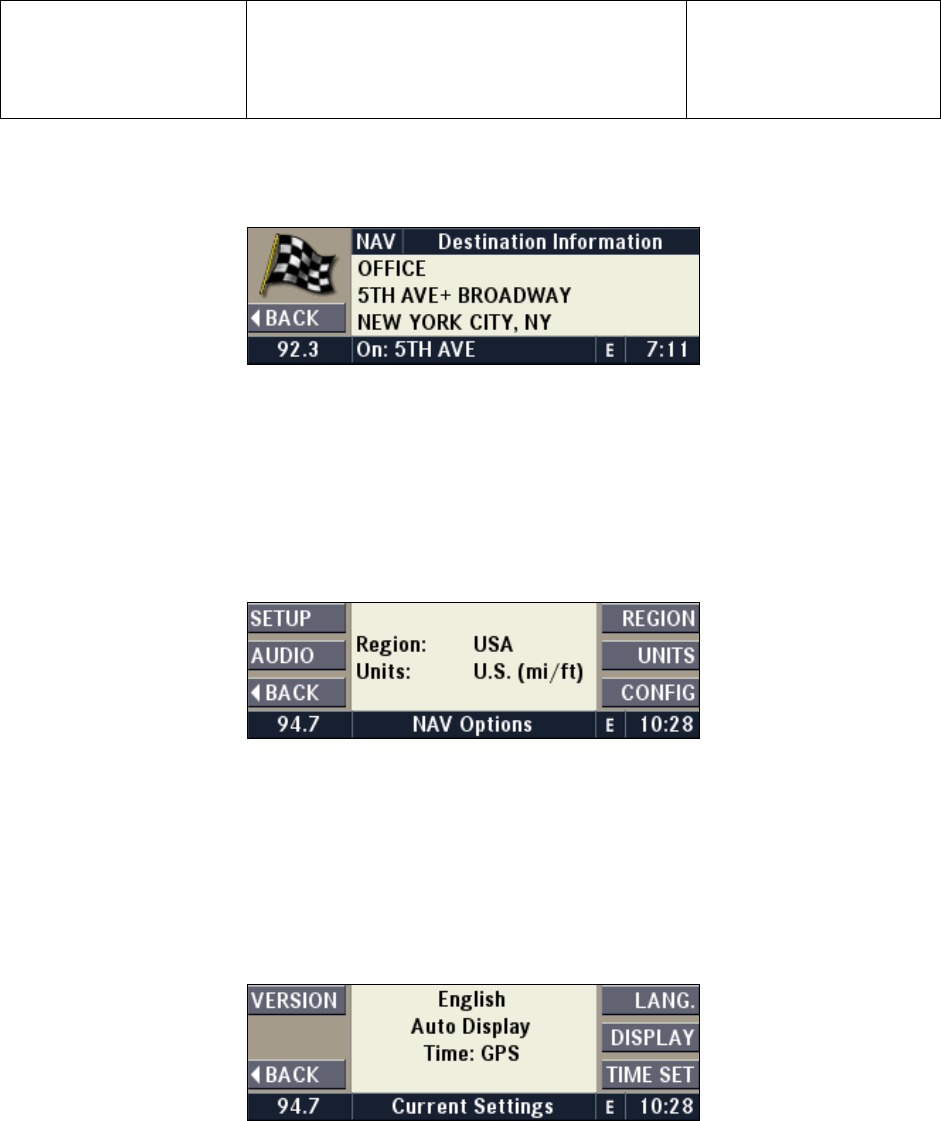 While in NAV Options Menu press the SETUP multifunction button to access the configuration menus 10.12.1.1