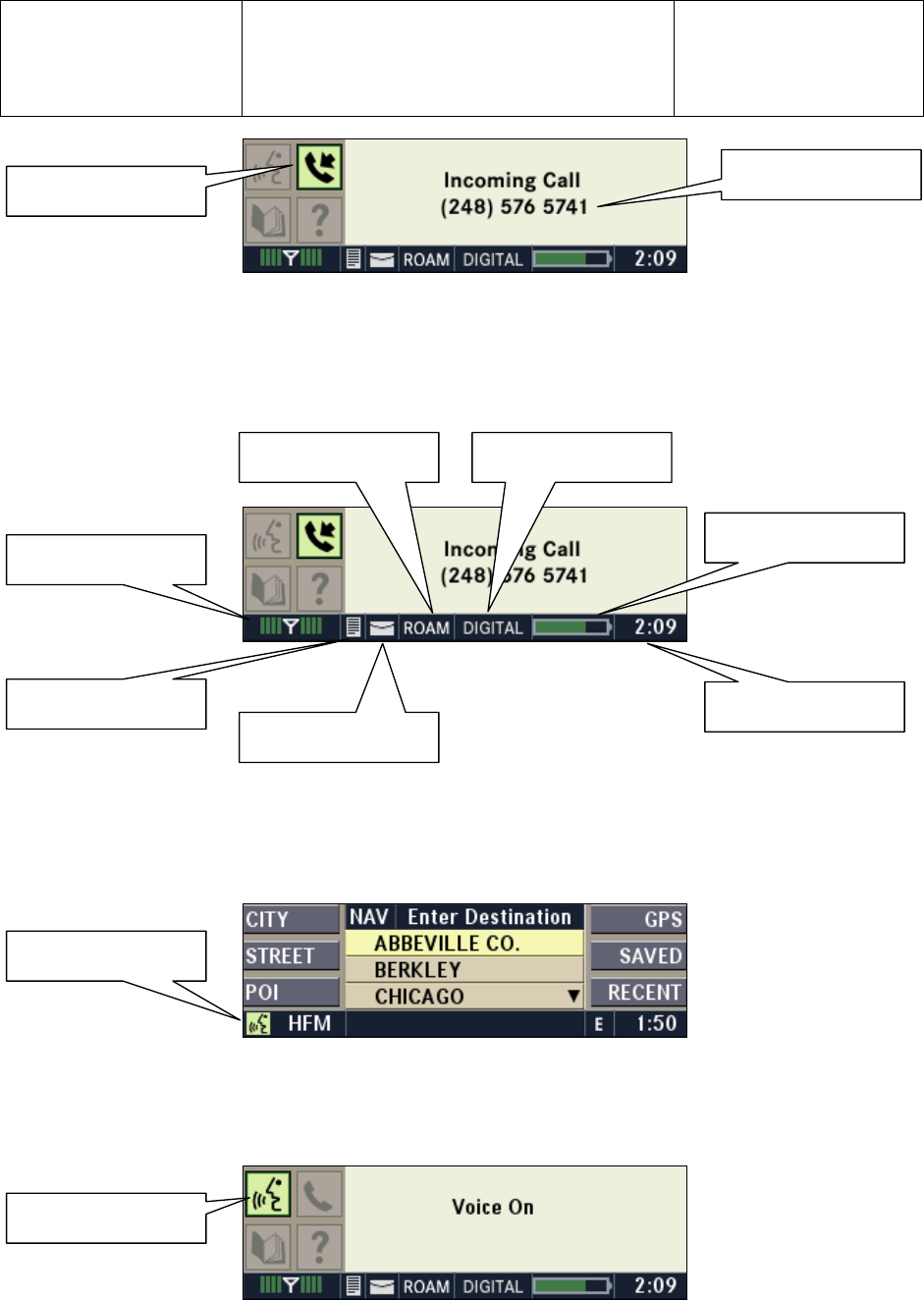 If the navigation radio is in any other mode or if you press the MODE button d uring a call, the inf ormat ion