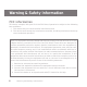 Warning & Safety Information FCC Information This device complies with part 15 of the FCC Rules. Operation is subject to the following two conditions: 1. This device may not cause harmful interference, and 2. This device must accept any interference received, including interference that may cause undesired operation. Note: This equipment has been tested and found to comply with the limits for a CLASS B digital device, pursuant to Part 15 of the FCC Rules.