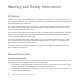 Table of Contents Table of Contents. . . . . . . . . . . . . . . . . . . . . . . . . . . . . . 2 Warning and Safety Information . . . . . . . . . . . . . . . . . . . . . . 4 IC Caution. . . . . . . . . . . . . . . . . . . . . . . . . . . . . . . . . . . 4 General Precautions . . . . . . . . . . . . . . . . . . . . . . . . . . . . . .