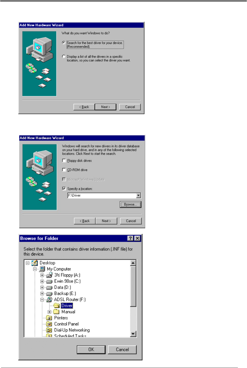 locatie specificeren"] en klik op "Next ["Bladeren"]. Blader naar de map "driver" op de