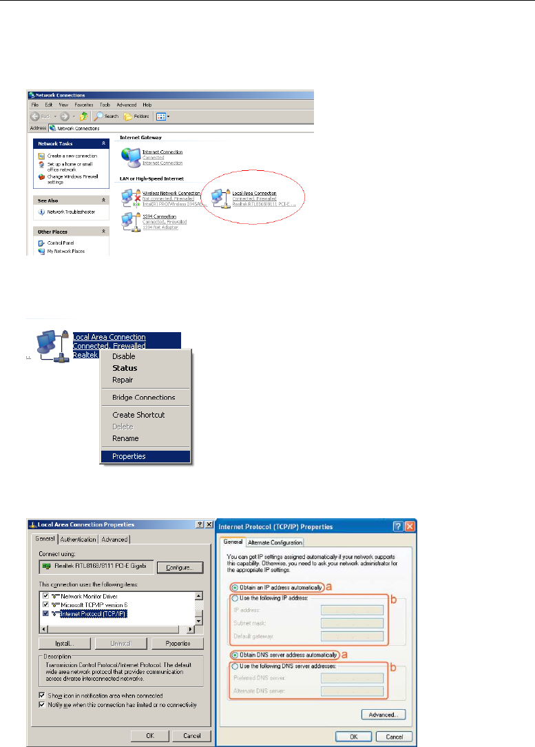 • Right-mouse-click on the [Local Area Connection]) icon, and select