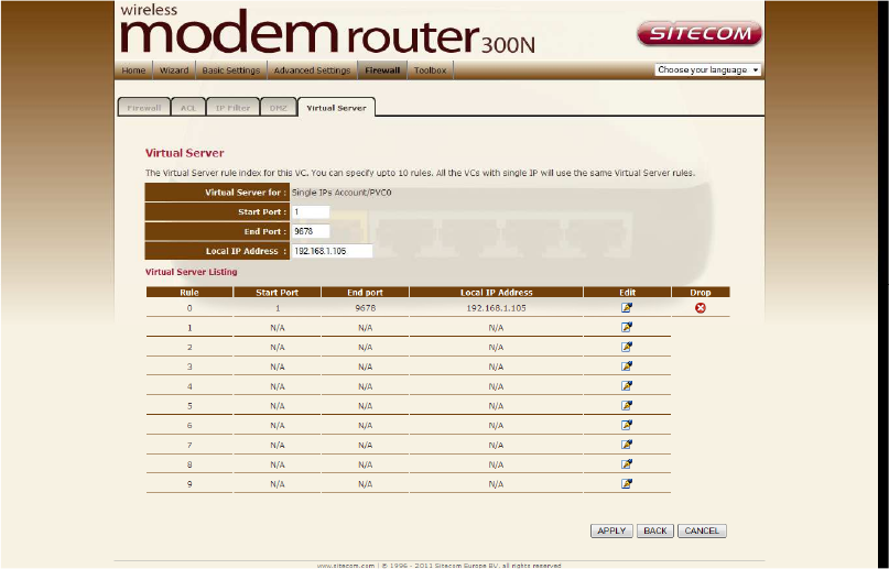 Use the Virtual Server function when you want different servers/clients in