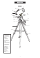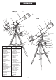 REFLECTOR NEQ3 C D B E F G A EQ5 H I J C B F A 10 9 G H I 8 1 7 6 5 4 2 3 8 b 7 6 EQ3-2 A. Dust Cap/Mask (Remove before Viewing) F. G. H. I. J. J 12 11 10 9 a B. C. D. E. D E Focus Tube Finderscope Finderscope Bracket Finderscope Adjustment Screws Eyepiece Focus Knob Piggyback Bracket Telescope Main Body Primary Mirror Position 1. Dec. Flexible Control Cable 2. R.A. Lock Knob 3. Polarscope Holder (not shown) 4. Altitude Adjustment T-bolts 5. Counterweight Rod 6. Counterweight 7.