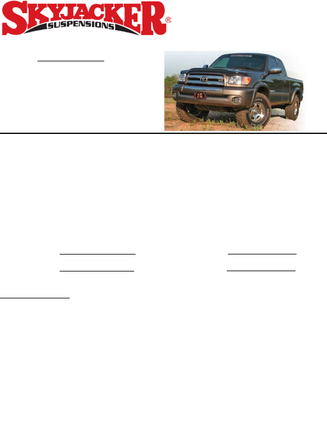 to the disassembly of the vehicle. If any parts are found to be missing, contact SKYJACKER