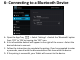 6- Connecting to a Bluetooth Device A. Open the App Tray > Select ‘Settings’ > Switch the ‘Bluetooth’ option from ‘OFF’ to ‘ON’ by tapping the ‘OFF’ icon. B. A list of available devices will appear to the right of the screen > Select the desired device to connect. C. Follow the instructions to complete the pairing. If you’re prompted to enter a passcode, consult with the documentation that came with the device. D. If the pairing is successful, your Tablet will connect to the device.