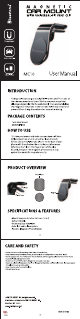 MAGNETIC CAR MOUNT WITH UNIVERSAL-FIT VENT CLIP MC User Manual INTRODUCTION Find typical mounts big and bulky? Wel not this ane! This is one of the slimmest mounts out there, This Is a one piece mount that allows you to just clip it to the vent directly. There are metal plates that magnetize the phone to the vent and help It stay secure and prevent It from falling.