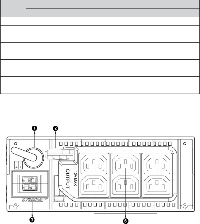 Rear panel description for LV and HV models table
