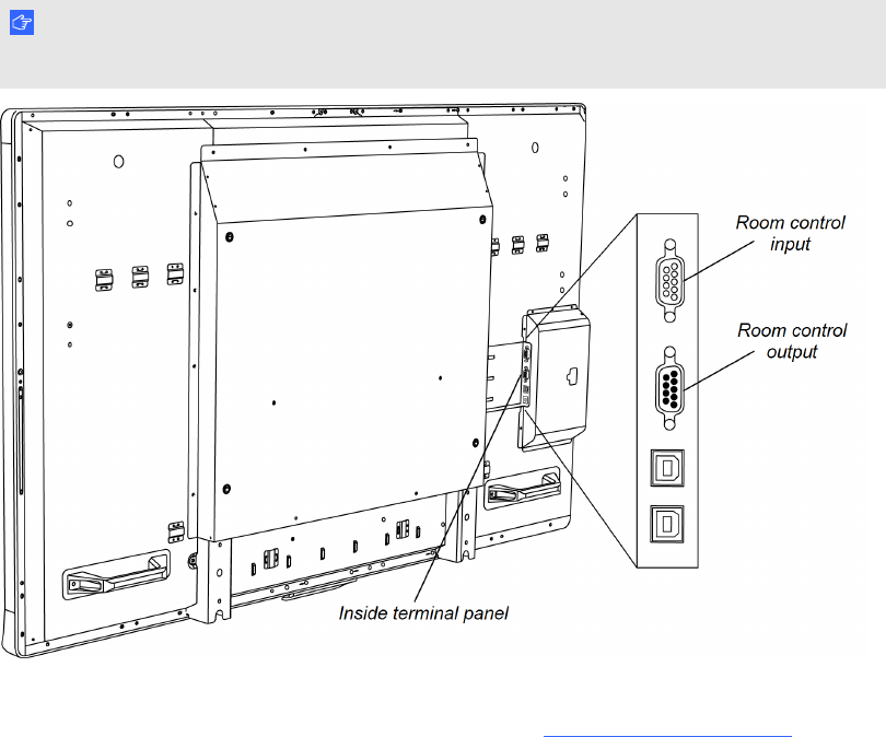 Connect an RS-232 cable from the room control input on the inside terminal panel of the