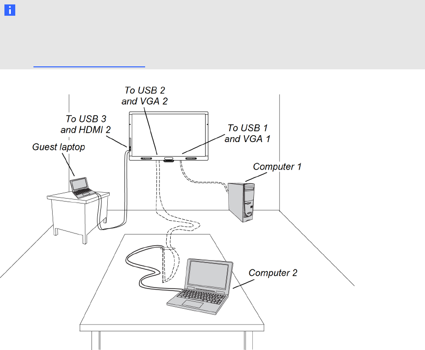 You can connect up to three computers simultaneously to your interactive flat panel: