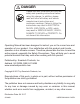 installed improperly or connected incorrectly to any electrical component. LIMITED Warranty (continued) Other Exclusions This warranty excludes: • Merchandise sold as reconditioned, used as rental equipment, or floor/display models sold without packaging and/or missing parts or components. • Repair and transportation costs of merchandise determined not to be defective. • Cosmetic defects such as paint, decals, etc. • Failures due to acts of God and other forces of nature beyond the manufacturer’s control.