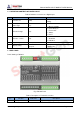 DIN16A DIGITAL INPUT MODULE USER MANUAL 5 DEFINITION OF INPUT PORT 5.1 DEFINITION CONTENTS OF DIGITAL INPUT Table 6 Definition Contents List of Digital Input NO. Items Contents 1 Function set (0-50) 2 Active Type (0-1) 3 Effective Range (0-3) 4 Effective Action (0-2) 5 Input Delay 6 Display string (0-20.0)s User-defined input port Description More details please refer to Function Setting.