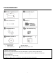 PACKUNGSINHALT Drahtlose App-Kamera x 1 Kamerahalterung x 1 Kamera-Antenne x 1 Netzteil x 1 Schraubenpaket x 1 F Rj45 Anschlussbuchse x1 G Handbuch auf CD x 1 H Kurzanleitung x 1 Benötigte Werkzeuge: • Bohrmaschine 15mm Steinbohrer • 5mm Steinbohrer Philips Schraubendreher Nr. 2 Für beste Systemleistung: - IOS: iPhone4S / iPad2 / Mini iPad oder höher. Maximal 12 registrierte Kameraverbindungen. - Android: 1,5G Dual-Core-Prozessor oder höher / 960*540 Pixel oder mehr.