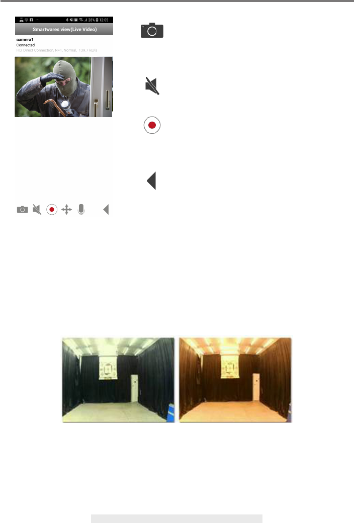 The APP allows users to have access to live video. User can take snapshot image(s) and record