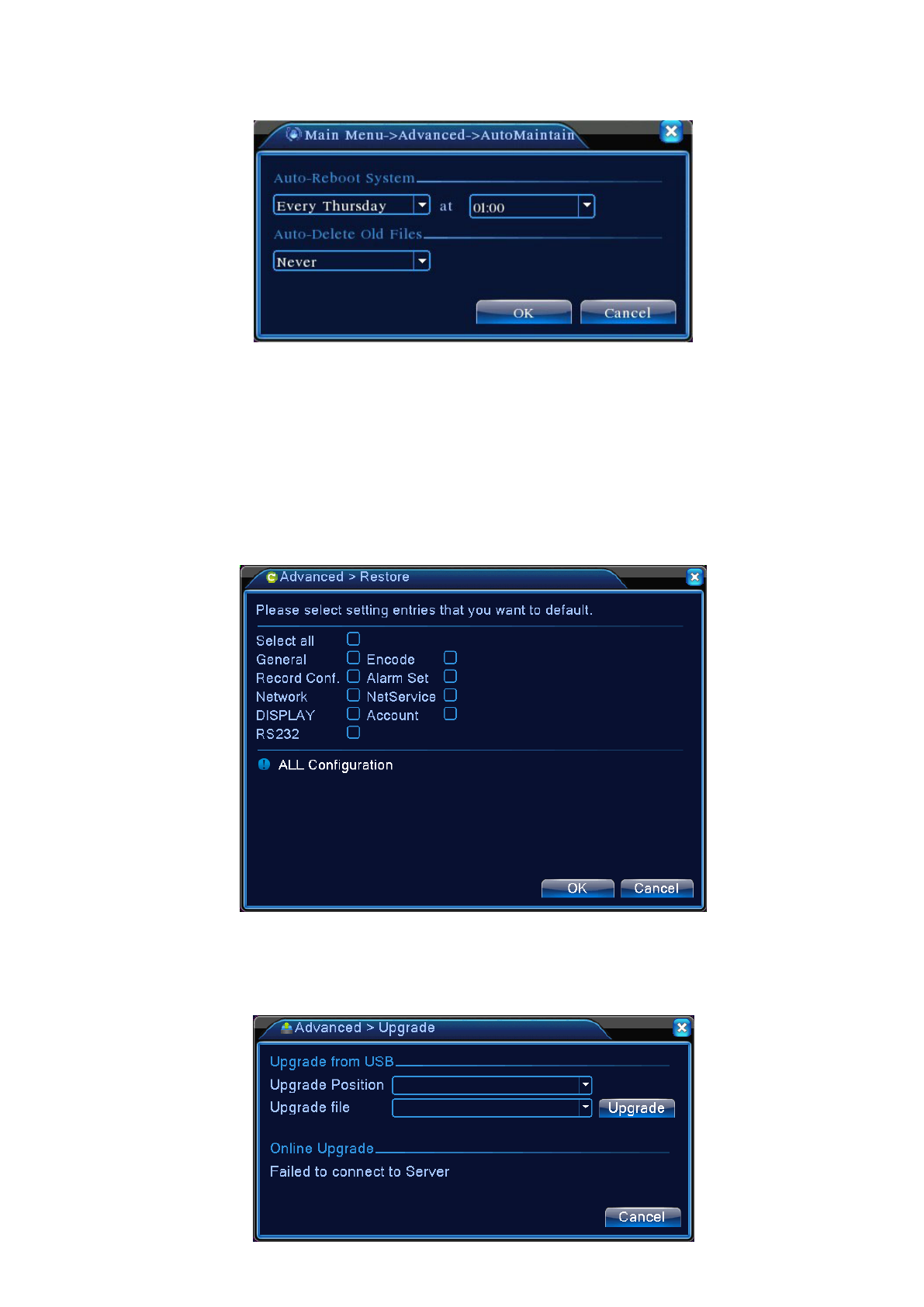 【Tijd automatisch in-/uitschakelen】:Stel de timer in om de DVR automatisch in en uit te schakelen.