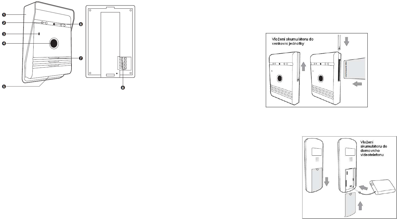 Vložení baterie (akumulátoru) do venkovní jednotky (Outdoor Intercom)
