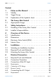 SMA Technologie AG Content Content 1 1.1 1.2 1.3 Notes on this Manual. . . Validity . . . . . . . . . . . . . . Target Group . . . . . . . . . . Explanation of the Symbols ..... ..... ..... Used . 2 2.1 The Sunny Mini Central . . . . . . . . . . . . . . . . . . . . 8 Appropriate Usage. . . . . . . . . . . . . . . . . . . . . . . . . 8 3 3.1 3.2 Safety Instructions . . . . . . . . . . . . . . . . . . . . . . . . 9 Handling of the Sunny Mini Central . . . . . . . . . . . . .