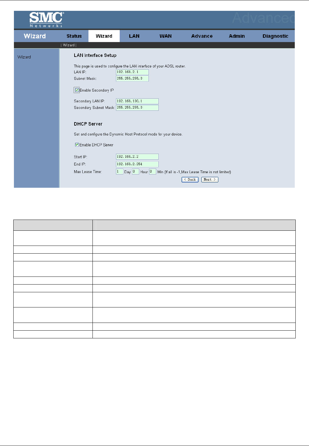 Secondary LAN IP Enter the secondary IP address of your ROUTER in dotted decimal