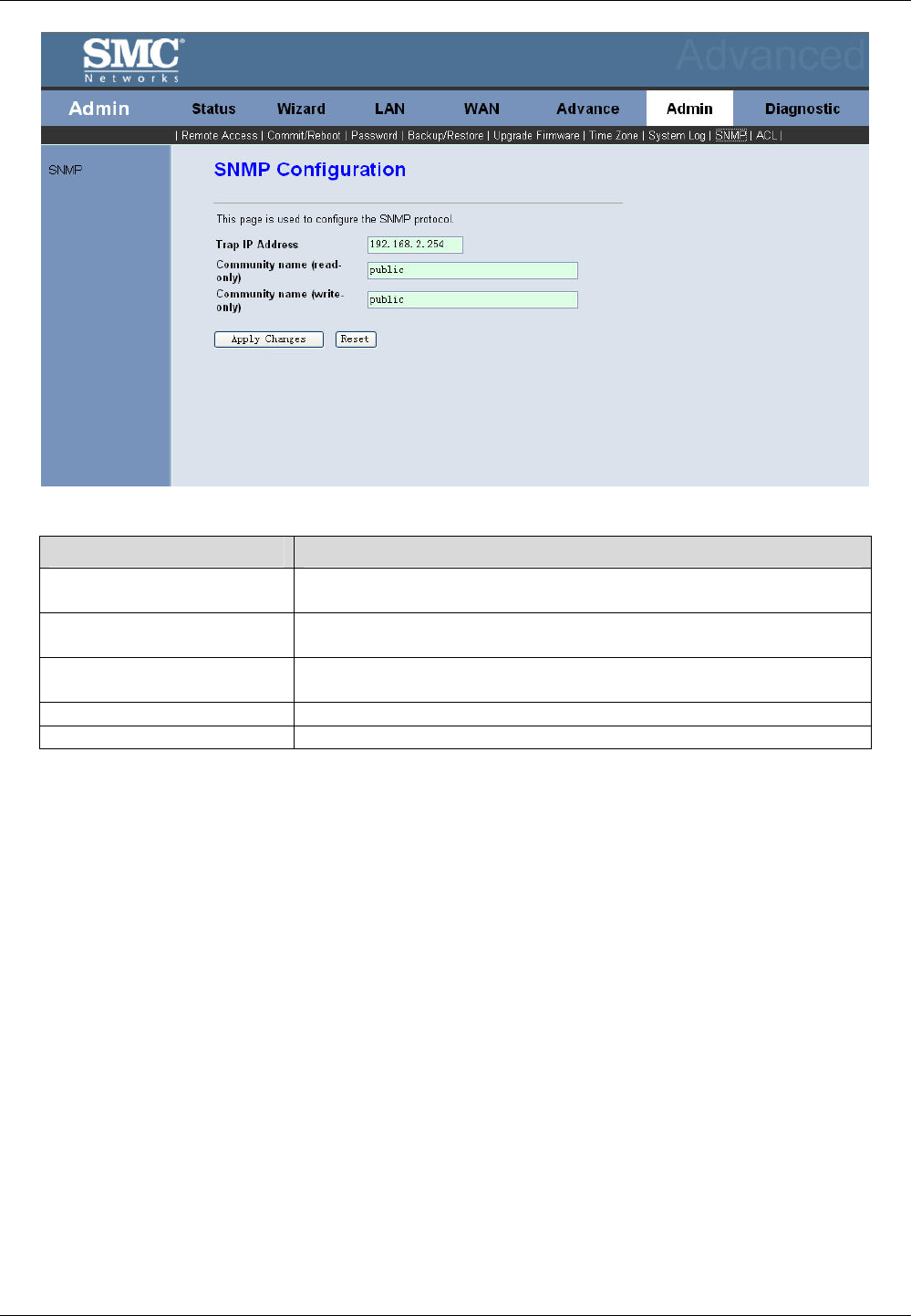 Trap IP Address Enter the IP address of the trap host. The trap information is sent to this