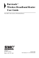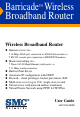 Barricade™ Wireless Broadband Router User Guide From SMC’s Barricade line of Broadband Routers 6 Hughes Irvine, CA 92618 Phone: (949) 707-2400 August 2001 Part Number: 01-111234-001 R02