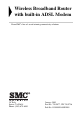 Wireless Broadband Router with built-in ADSL Modem From SMC’s line of award-winning connectivity solutions 38 Tesla Irvine, CA 92618 Phone: (949) 679-8000 January 2003 Part No: 750.9077, UK 750.
