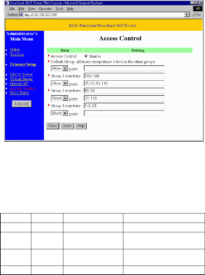 Group 3 1-9,20 Block () Fully access (block nothing)