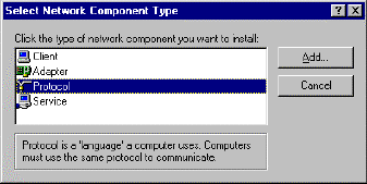 3. Click the Add button to add the network component into your PC.