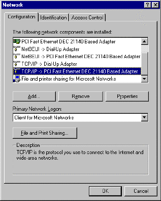 2. Double click the Network icon. Select the TCP/IP line that has been assigned to your