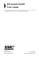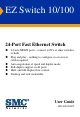 EZ Switch 10/100 24-Port Fast Ethernet Switch 24 auto-MDI/X ports – connect to PCs or other switches or hubs Plug and play – nothing to configure, no crossover cables required Auto-negotiation of speed and duplex mode Full-duplex support on all ports Half- and full-duplex flow control Desktop and rack mountable User Guide SMC-EZ1024DT