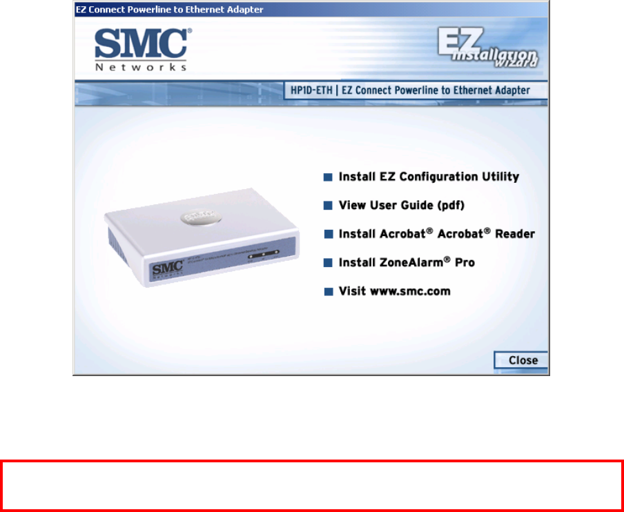 the [SMCHP1D-ETH.exe] icon to launch this splash screen.