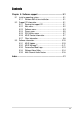 Contents Chapter 5: Software support ............................................... 5-1 5.1 5.2 5.3 Install an operating system .................................................. 5-1 5.1.1 Windows 98 first time installation ............................ 5-1 Support CD information ....................................................... 5-1 5.2.1 Running the support CD ......................................... 5-1 5.2.2 Main menu ............................................................. 5-2 5.2.