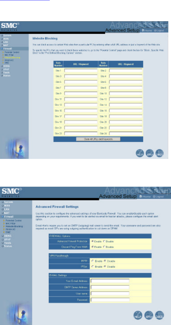 This section allows you to configure several advanced features for the Barricade Firewall.