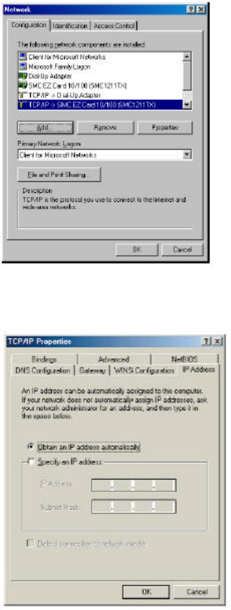 3. Highlight the TCP/IP line that has been assigned to your network card on the [Configuration]