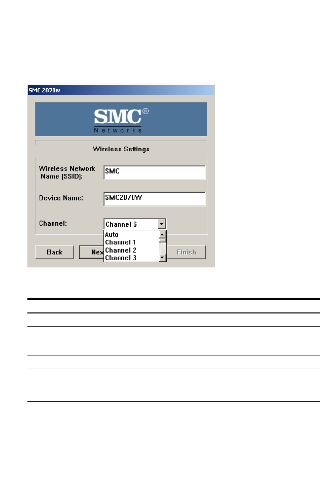 Device Name The name of the wireless access point. (Default: SMC2870W)