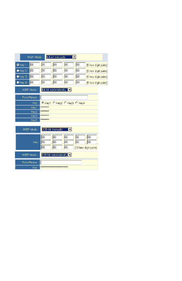 enter the keys. For automatic 64-bit security, enter a passphrase.