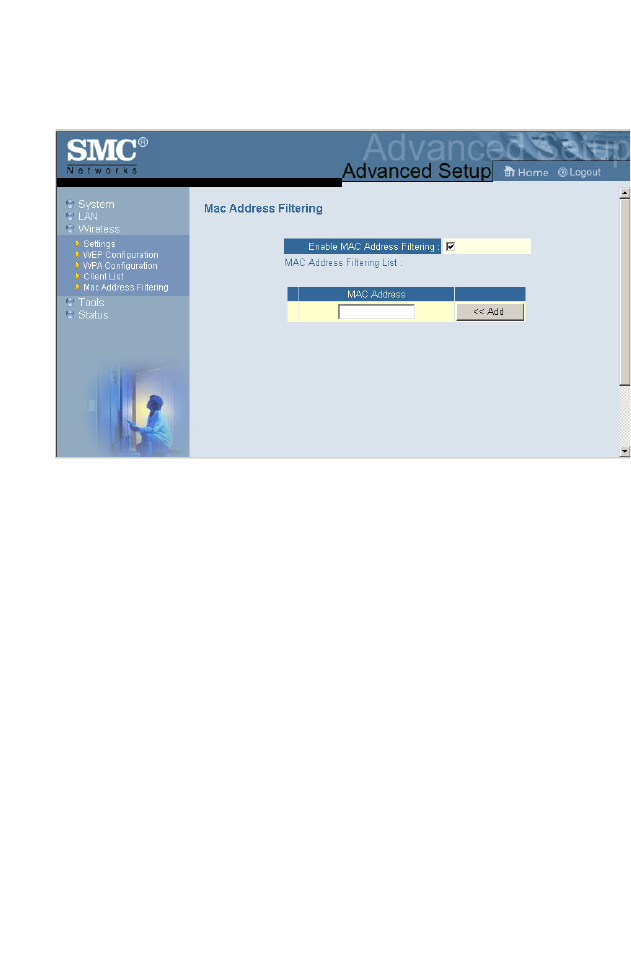 The MAC Address Filtering feature of the SMC2870W allows you