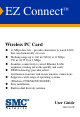 EZ CONNECT™ WIRELESS PC CARD SMC’s EZ Connect Wireless PC Card is an 11 Mbps wireless network adapter that seamlessly integrates with existing Ethernet networks to support applications such as mobile users or temporary conferences. This solution offers a high data rate and reliable wireless connectivity with considerable cost savings over wired LANs (which include long-term maintenance overhead for cabling).