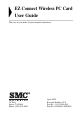 EZ CONNECT™ WIRELESS PC CARD Package Checklist The EZ Connect Wireless PC Card package includes: • 1 Wireless PC Card (SMC2632W) • 1 SMC2632W Driver, Utility, & Documentation CD • This User Guide Please register this product and upgrade the product warranty at www.smc.com. Please inform your dealer if there are any incorrect, missing, or damaged parts. If possible, retain the carton, including the original packing materials.