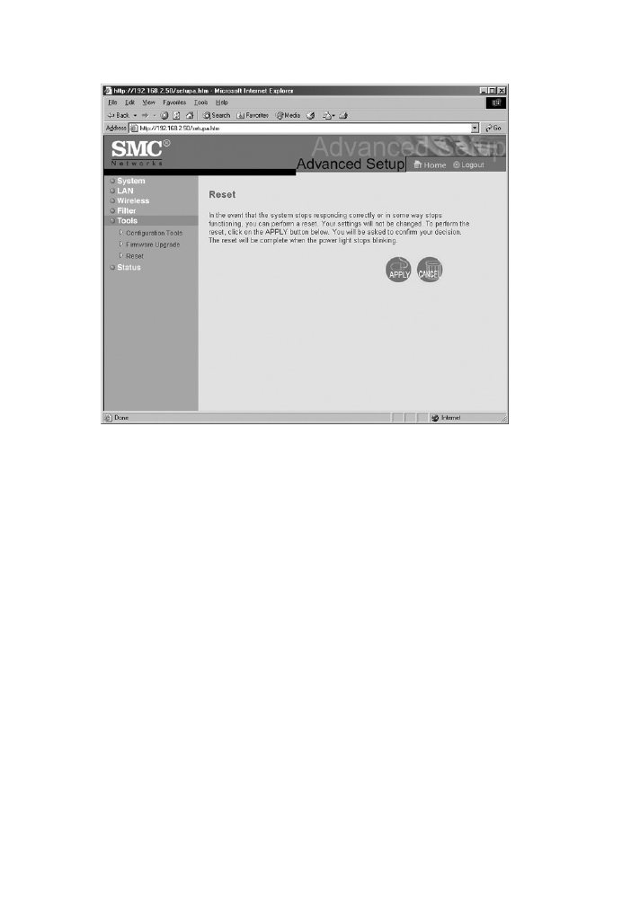 4. La unidad se reiniciará y restablecerá el SMC2455W.