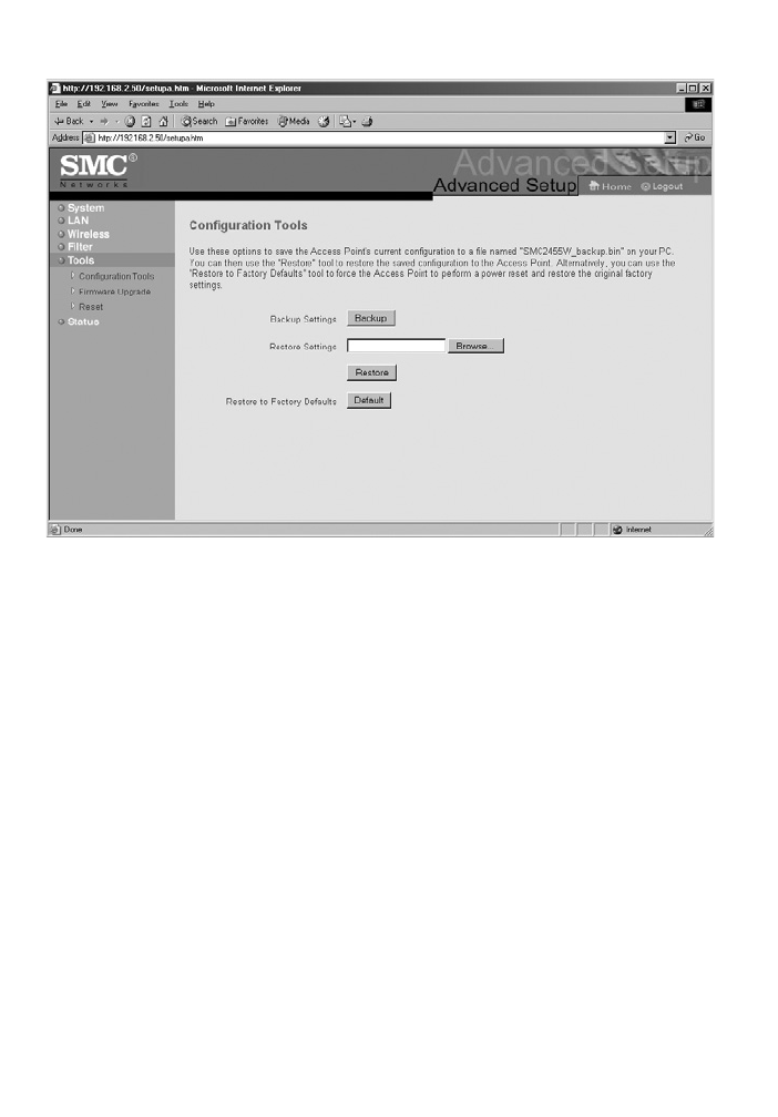 4. La unidad se reiniciará y restablecerá el SMC2455W a los