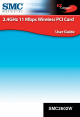 1 | System Requirements • • • Available Bus-Mastered PCI slot Windows 98SE/Me/2000/XP Another IEEE 802.11b compliant device installed in your network, such as the SMC7004VWBR Barricade Wireless Cable/DSL Broadband Router, or another PC with a wireless adapter, such as the SMC2662W EZ Connect Wireless USB Adapter. 2 | Equipment Checklist After unpacking the SMC2602W EZ Connect 2.