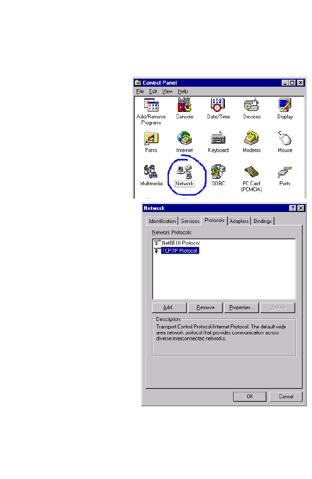 1. From the Windows desktop click Start/Settings/Control Panel.