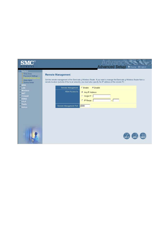 remote host. Click APPLY. (Default: Disable.)