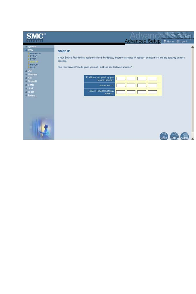 enter the assigned address and subnet mask for the Wireless