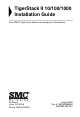 TigerStack II 10/100/1000 Installation Guide From SMC's Tiger line of feature-rich workgroup LAN solutions 20 Mason Irvine, CA 92618 Phone: (949) 679-8000 August 2009 Pub.