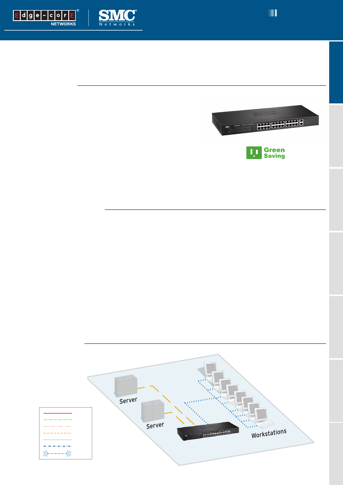 The EZ Switch 10/100 SMCFS2601 is an unmanaged, rack-mountable