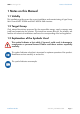 SMA Technologie AG Content Content 1 1.1 1.2 1.3 Notes on this Manual. . . Validity . . . . . . . . . . . . . . Target Group . . . . . . . . . . Explanation of the Symbols ..... ..... ..... Used . 2 2.1 The Sunny Mini Central . . . . . . . . . . . . . . . . . . . . 8 Appropriate Usage. . . . . . . . . . . . . . . . . . . . . . . . . 8 3 3.1 3.2 Safety Instructions . . . . . . . . . . . . . . . . . . . . . . . . 9 Handling of the Sunny Mini Central . . . . . . . . . . . . .