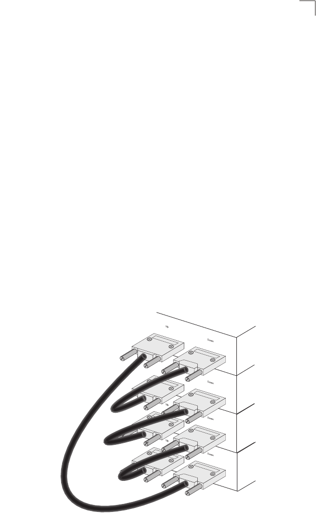 Figure 3-7 shows how the stack cables are connected between switches in a stack.