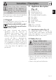 Instructions / Description 1.5 Disposal Electrical appliances must not be disposed of together with household waste. Devices marked with this symbol are subject to European Directive 2012/19/EU. • All waste electrical and electronic appliances must be disposed of separately from domestic waste and taken to authorised waste disposal facilities. Disposing of the used appliance correctly will help to safeguard the environment and human health.