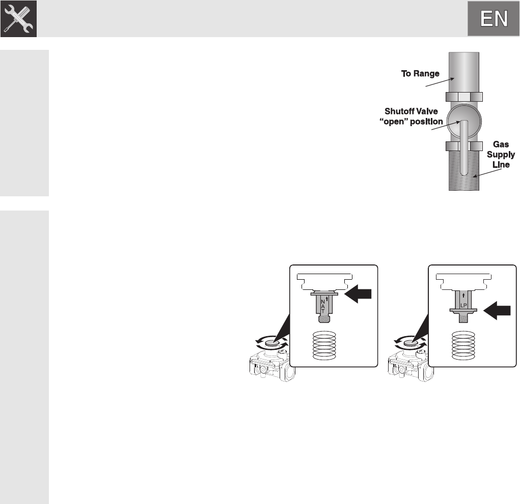 The range must be isolated from the gas supply piping system by turning off the respective manual shut-